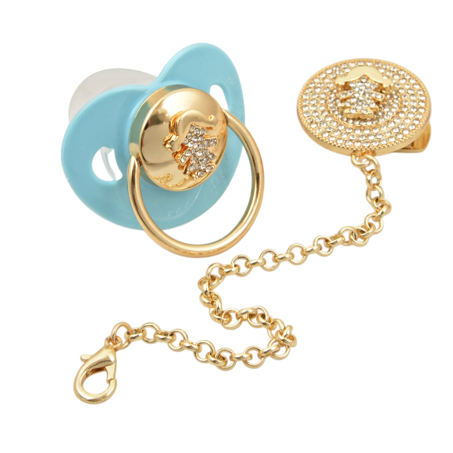 Χειροποίητη πιπίλα πολυτελείας με ασορτί αλυσίδα κλιπ. Μοναδικές πιπίλες με στρας για τις πιο ξεχωριστές εμφανίσεις του μωρού σας!