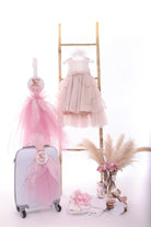 A complete christening package for your little one, in dreamy shades of soft pink and off white, with romantic details of lace and satin ribbons.