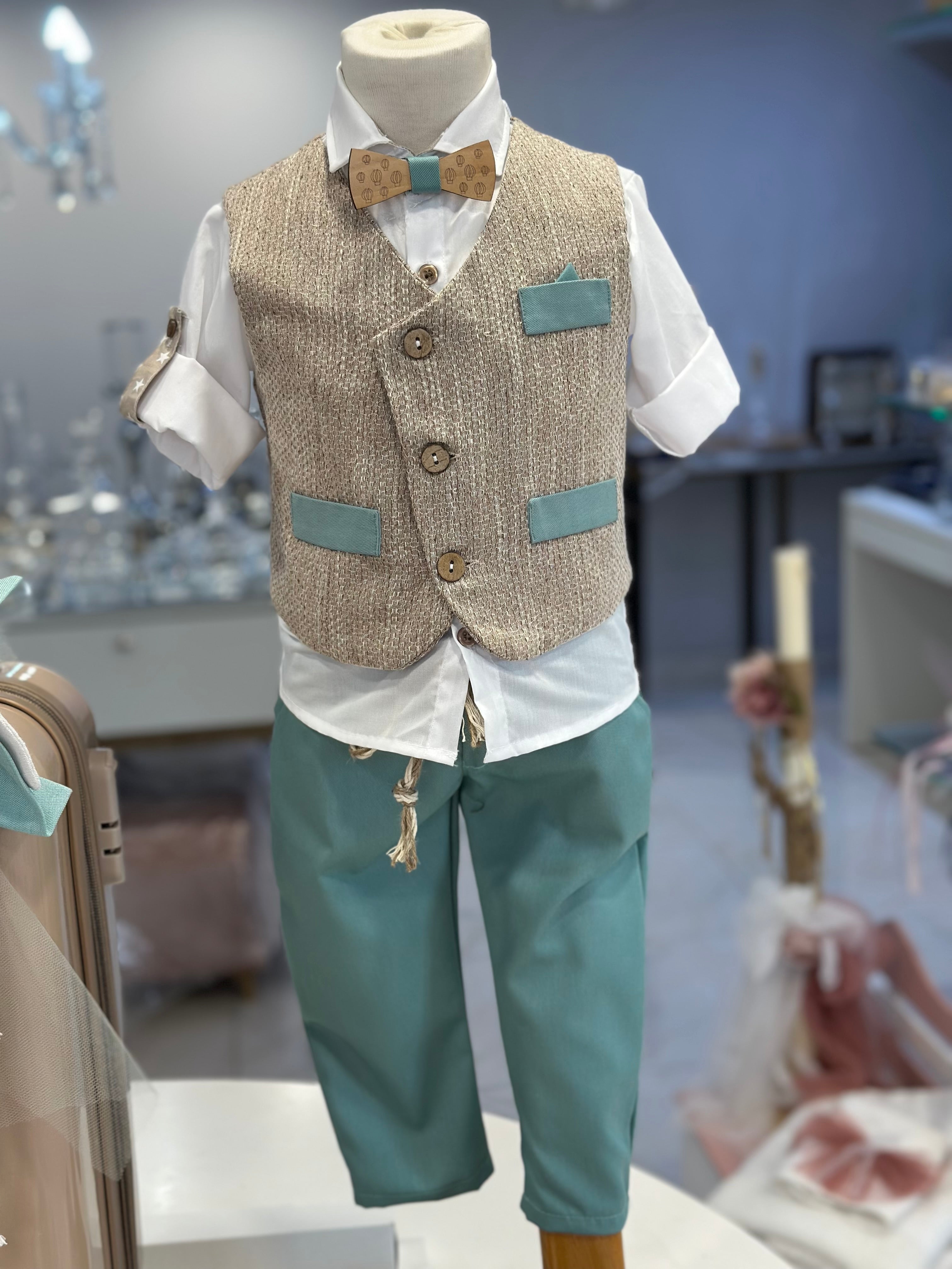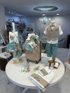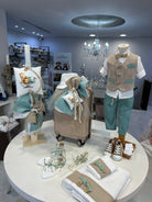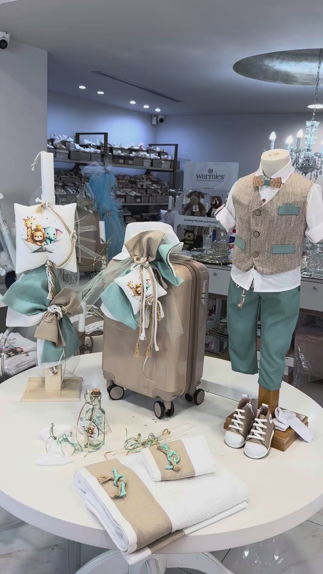 A classy, complete baptism package for your little one, with a nautical theme, in gray, white and light blue.
