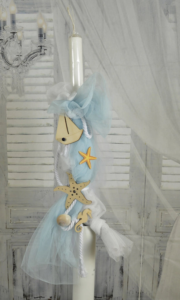Χειροποίητη Λαμπάδα Βάπτισης με ξεχωριστό σχεδιασμό, φτιαγμένη με υψηλής ποιότητας υλικά.