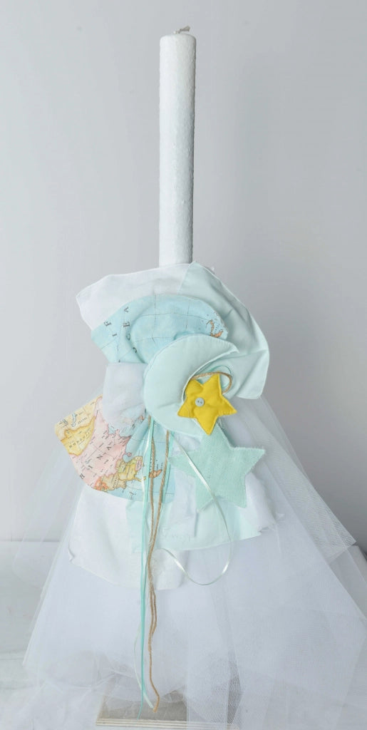 Χειροποίητη Λαμπάδα Βάπτισης με ξεχωριστό σχεδιασμό, φτιαγμένη με υψηλής ποιότητας υλικά.