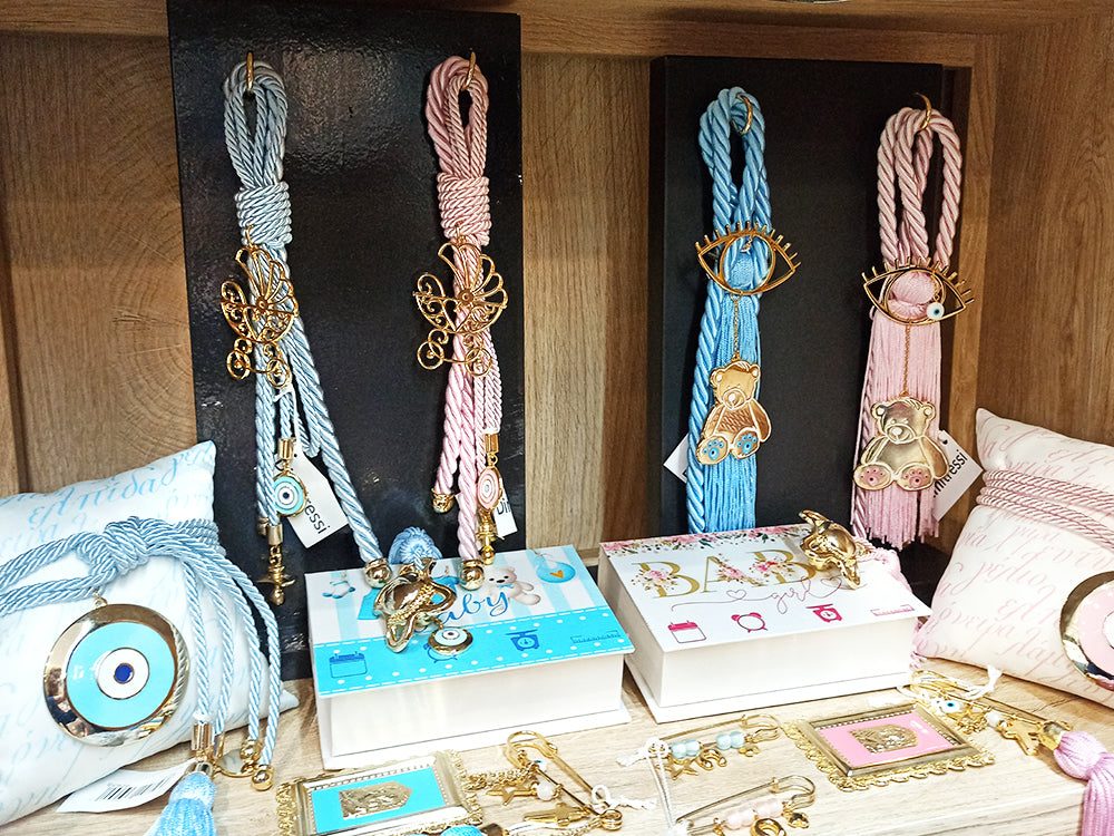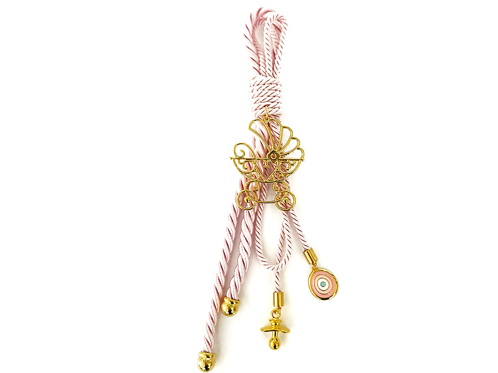 Διακοσμητικό κρεμαστό γούρι ροζ με καρότσι