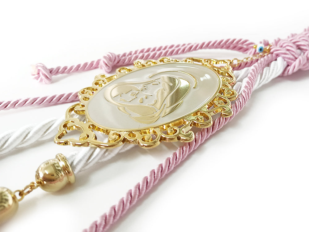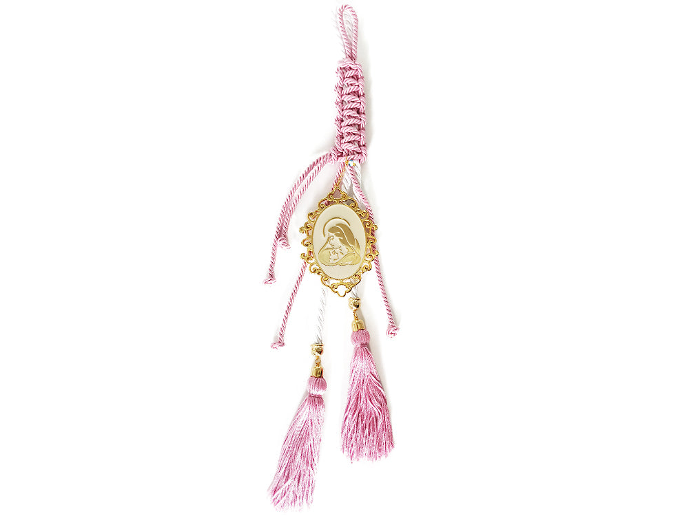 Διακοσμητικό κρεμαστό γούρι ροζ με Παναγία