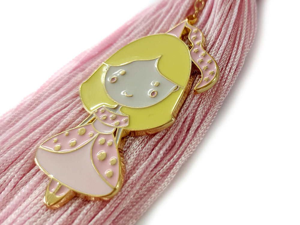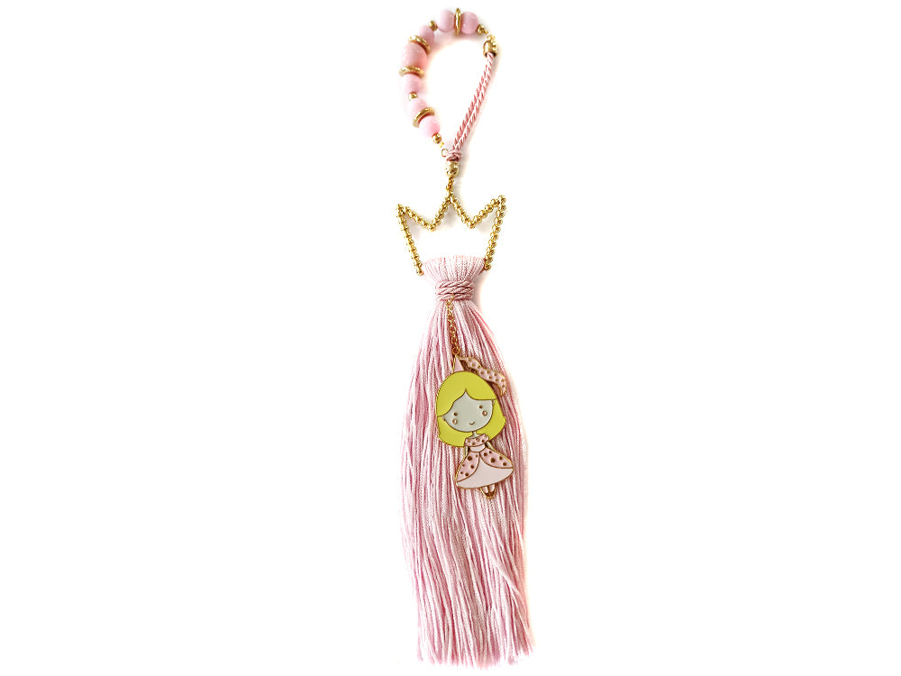 Διακοσμητικό κρεμαστό γούρι ροζ με πριγκίπισσα και χάντρες