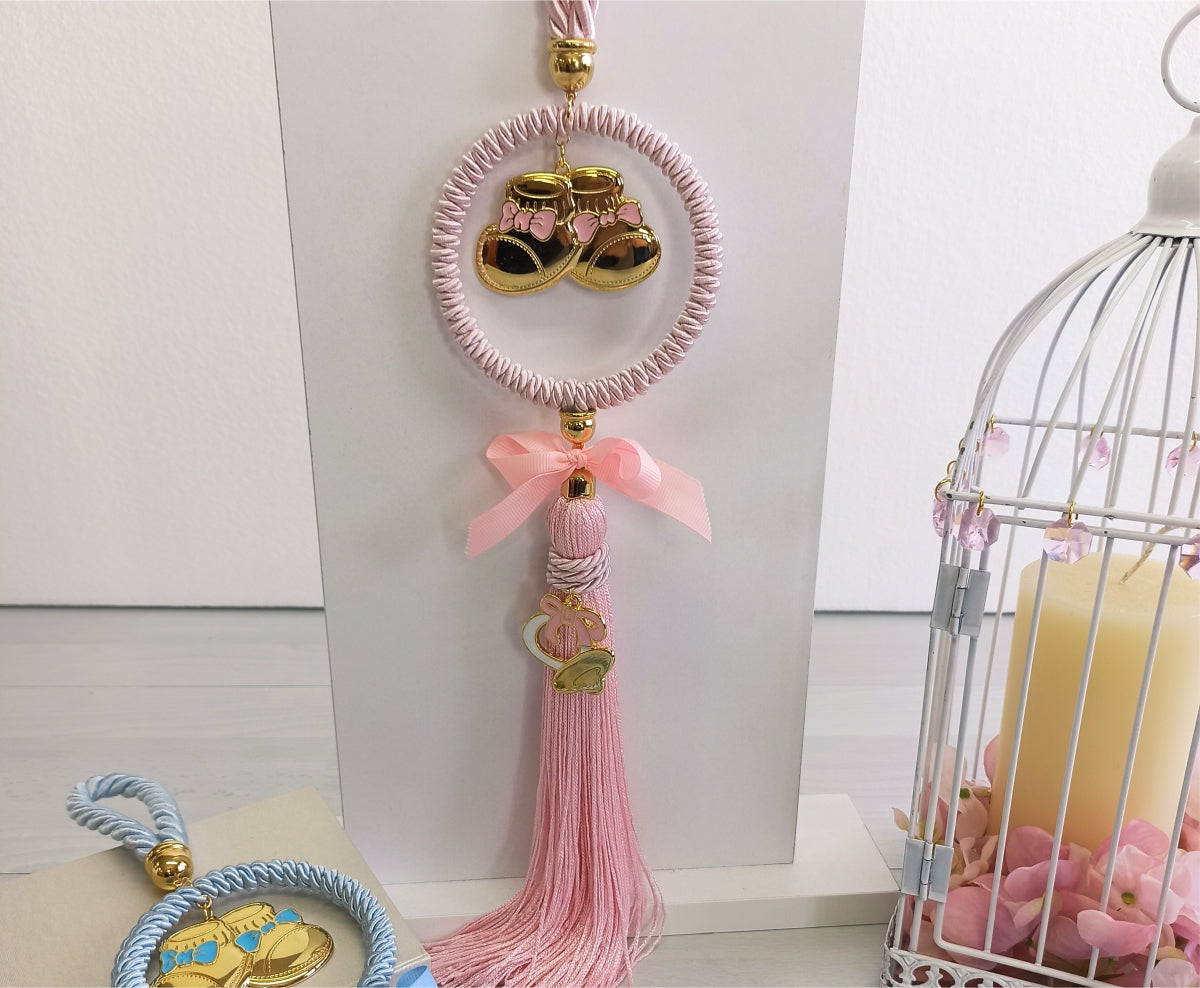 Διακοσμητικό κρεμαστό ροζ με παπουτσάκια και πιπίλα