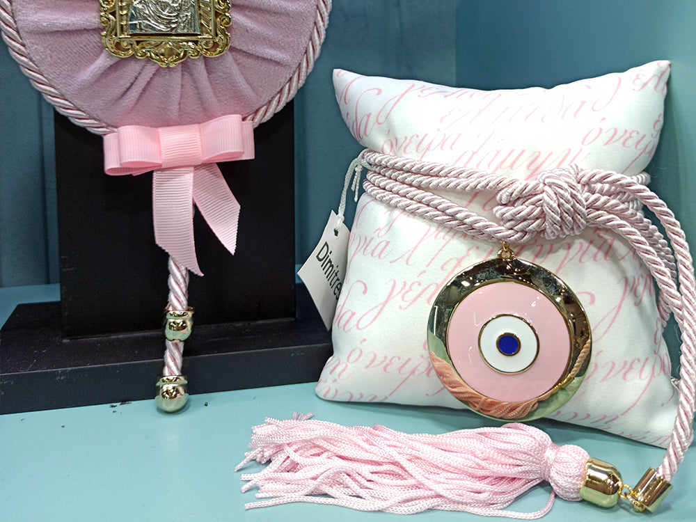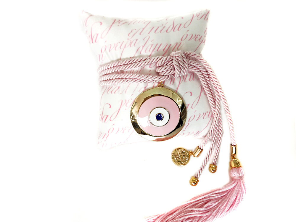 Διακοσμητικό μαξιλάρι ροζ με μάτι και ευχές
