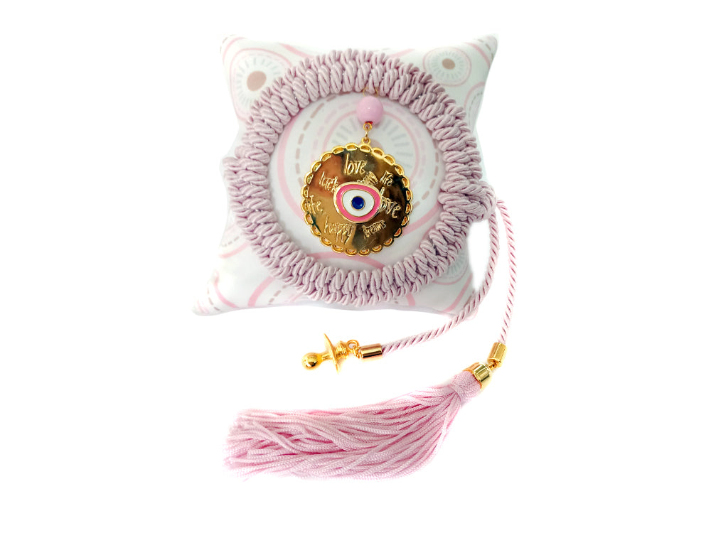 Διακοσμητικό μαξιλάρι ροζ με μάτι και πιπίλα