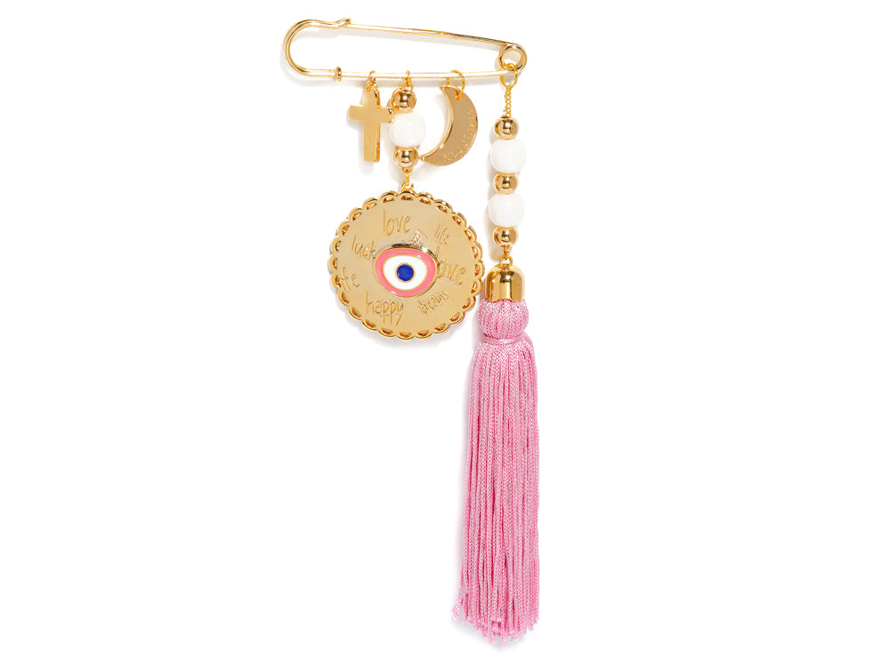 Φυλαχτό ροζ μάτι-ευχές με παραμάνα