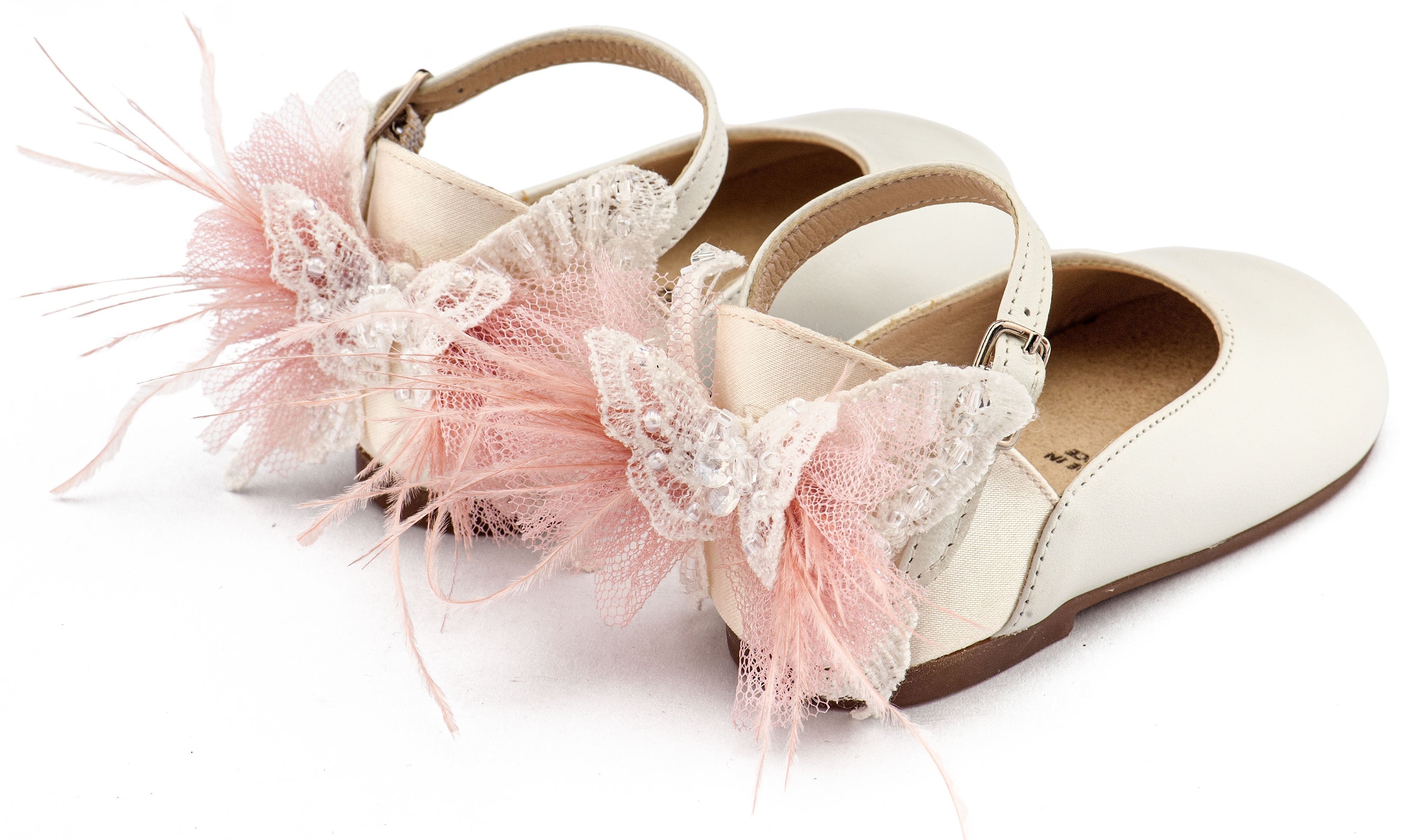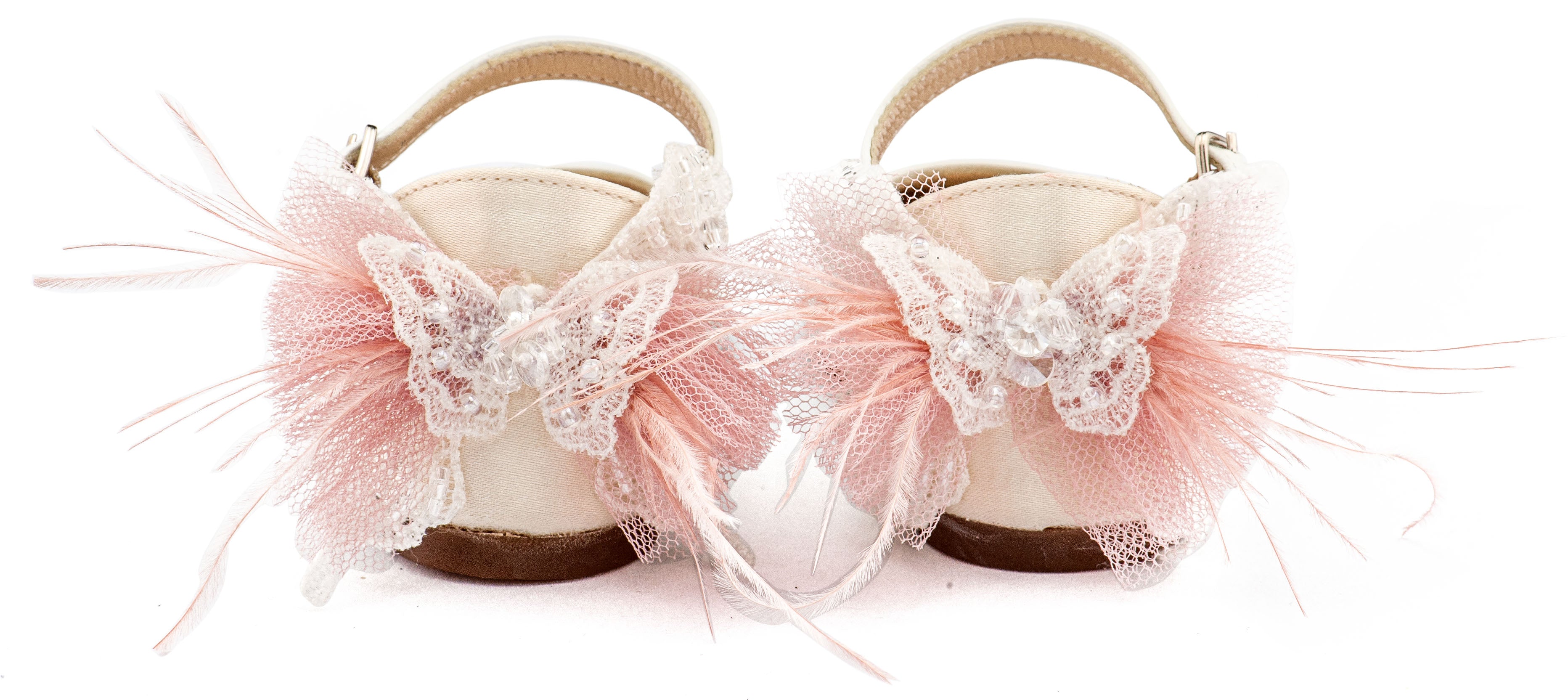 Γαλλικό Γοβάκι με Διακοσμημένη Φτέρνα Πεταλούδα BW4891 Εκρού Ροζ