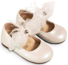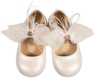 Γοβάκι Μονή Μπαρέτα Διακοσμημένο με Υφασμάτινο Χειροποίητο Φιόγκο από Συνθετικό Δέρμα σε Εκρού χρώμα