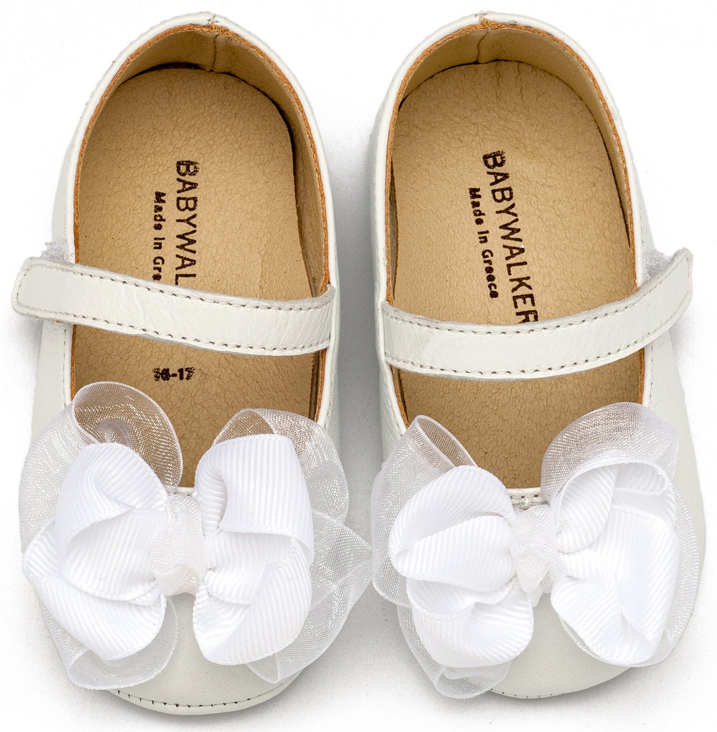 Δερμάτινο Γοβάκι Μονή Μπαρέτα με Υφασμάτινο Χειροποίητο Φιογκάκι σε Λευκό Χρώμα