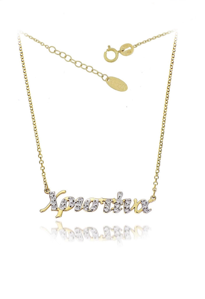 Γυναικείο Κολιέ χρυσό με Όνομα με πέτρες Ζιργκόν. Διαθέσιμο σε Κ9 και Κ14.