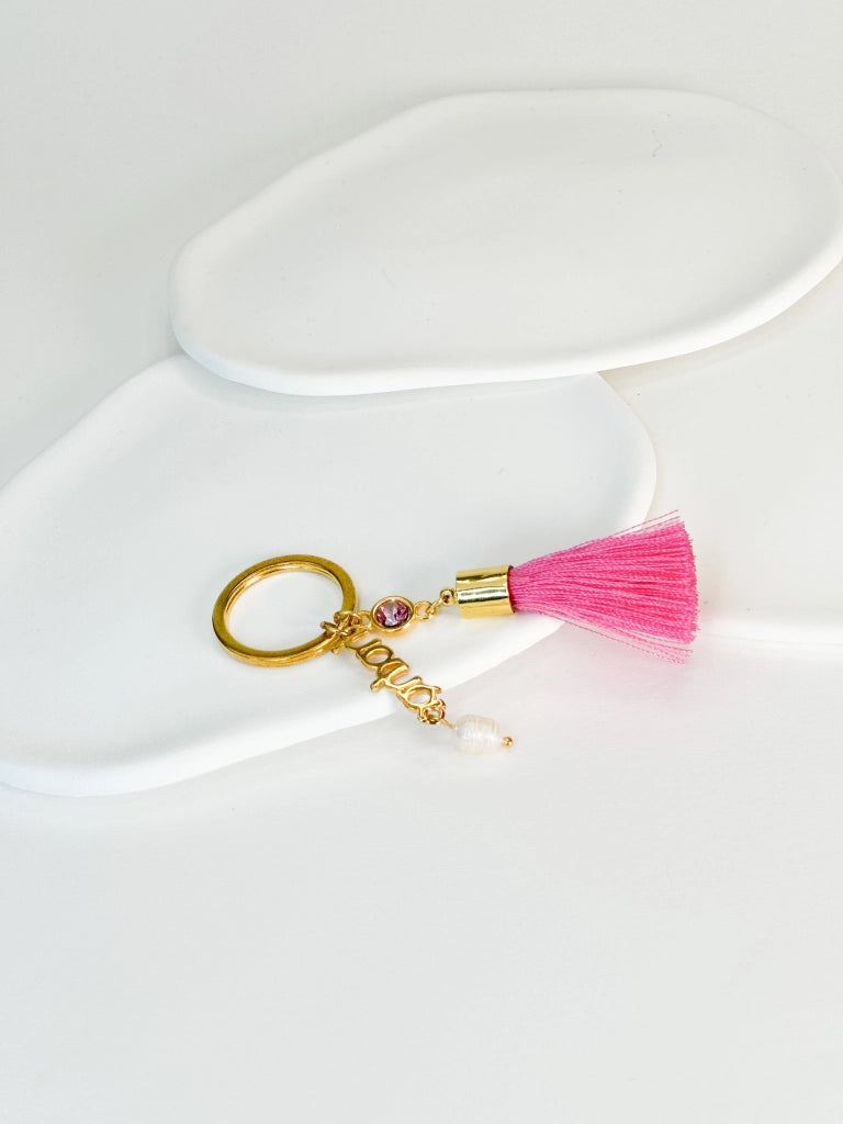 Μπρελόκ για την μαμά,την νονά και την γιαγιά με φούξια φούντα και σβαρόφσκι.Οι φωτογραφίες έχουν υποστεί επεξεργασία,ίσως να διαφέρουν λίγο τα χρώματα στην πραγματικότητα.