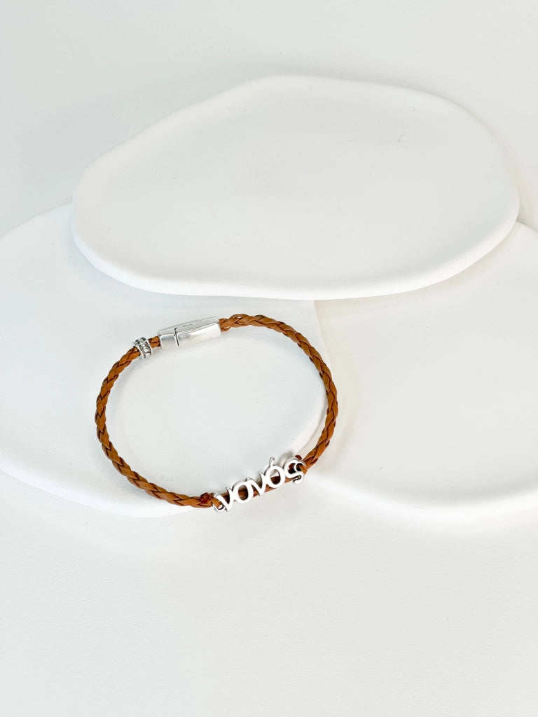 Βραχιολάκι με καφέ κορδόνι πλεξούδα για τον μπαμπά και τον νονό.