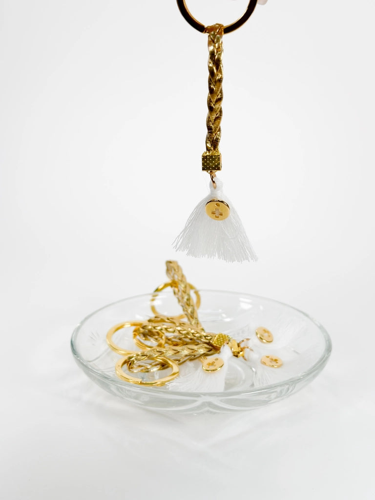 Χειροποίητο Μαρτυρικό Μπρελόκ σε χρυσό με λευκό διακοσμητικό φουντάκι.