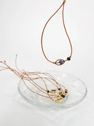 Χειροποίητο μαρτυρικό βραχιόλι σε αποχρώσεις του χρυσού με χρυσές λεπτομέριες και διακοσμητικό ματάκι.