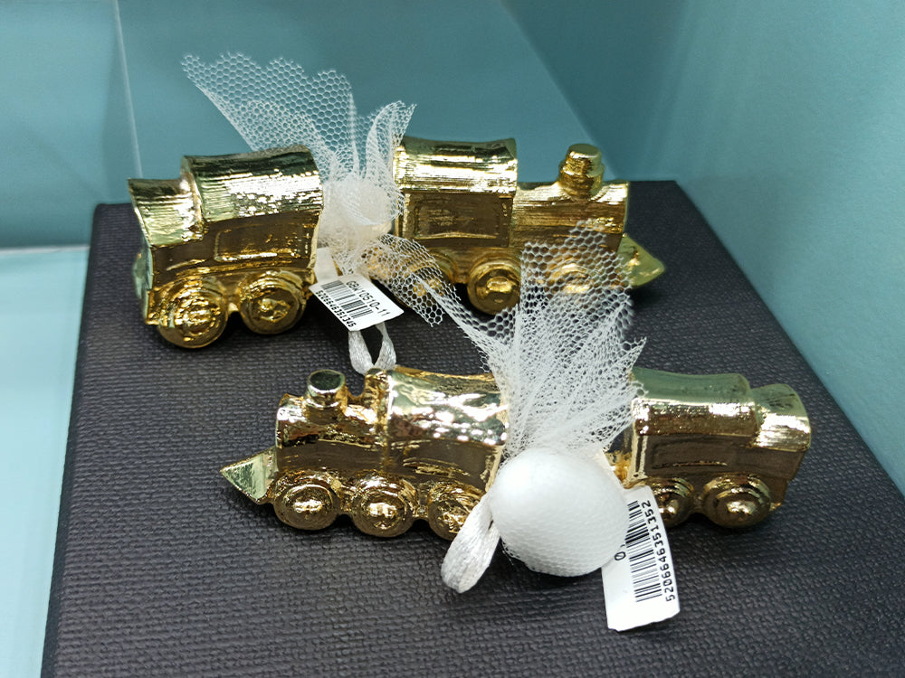 Μπομπονιέρα επίχρυσο τρενάκι.