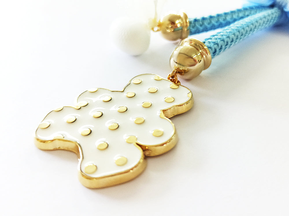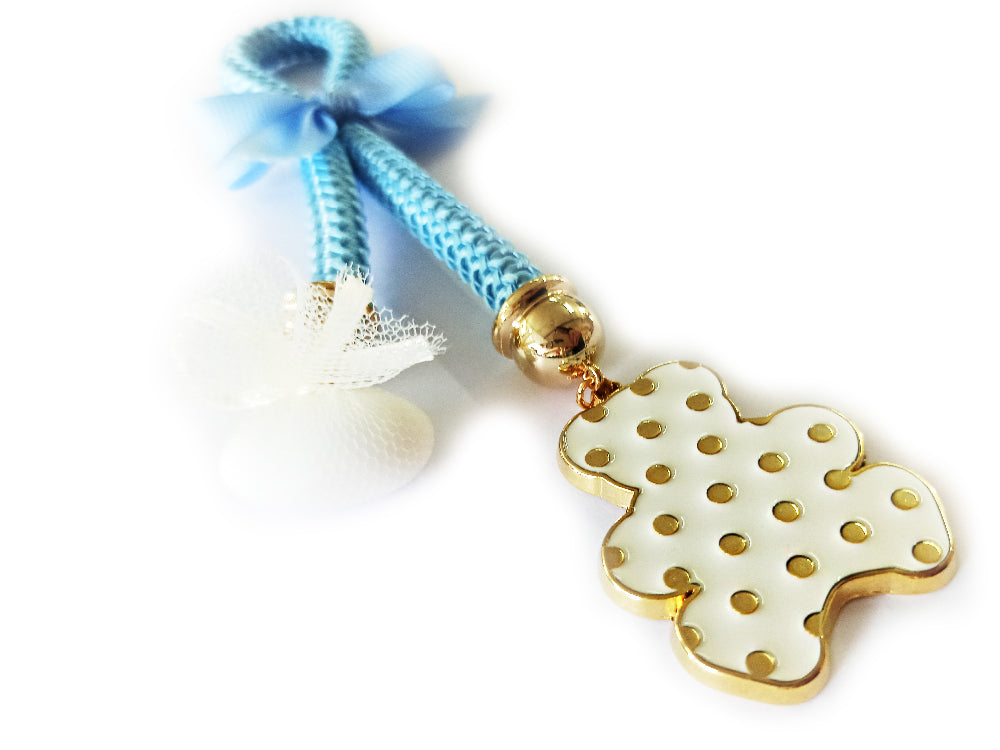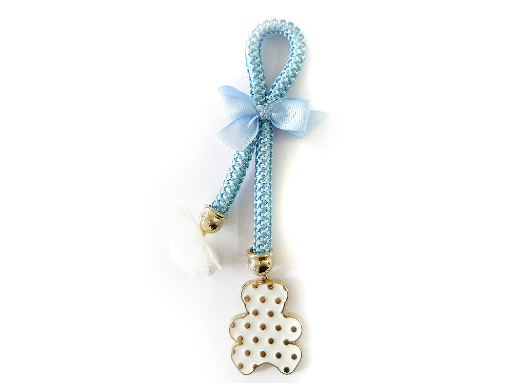 Μπομπονιέρα σιέλ με πουά αρκουδάκι.