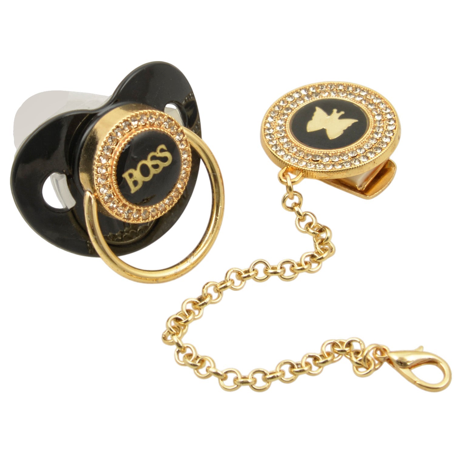 Χειροποίητη πιπίλα πολυτελείας με ασορτί αλυσίδα κλιπ. Μοναδικές πιπίλες με στρας για τις πιο ξεχωριστές εμφανίσεις του μωρού σας!