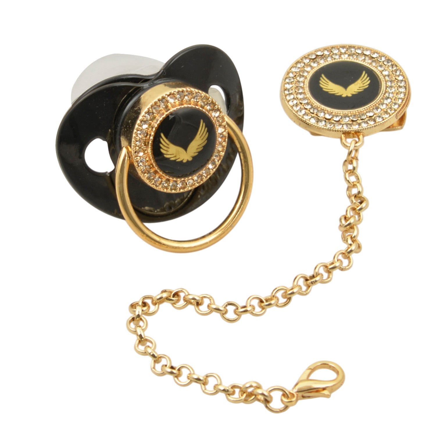 Χειροποίητη πιπίλα πολυτελείας με ασορτί αλυσίδα κλιπ. Μοναδικές πιπίλες με στρας για τις πιο ξεχωριστές εμφανίσεις του μωρού σας!