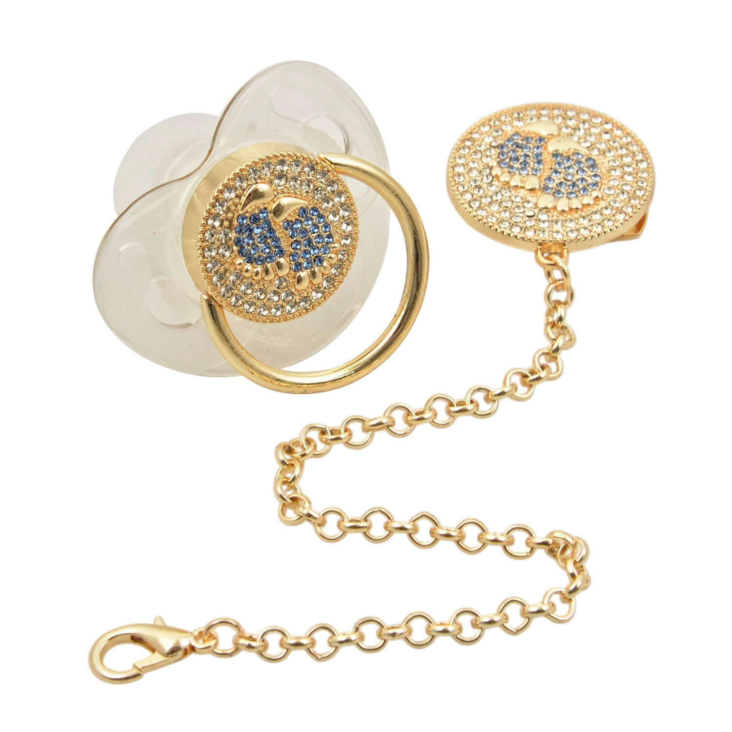 Χειροποίητη πιπίλα πολυτελείας με ασορτί αλυσίδα κλιπ. Μοναδικές πιπίλες με στρας για τις πιο ξεχωριστές εμφανίσεις του μωρού σας!
