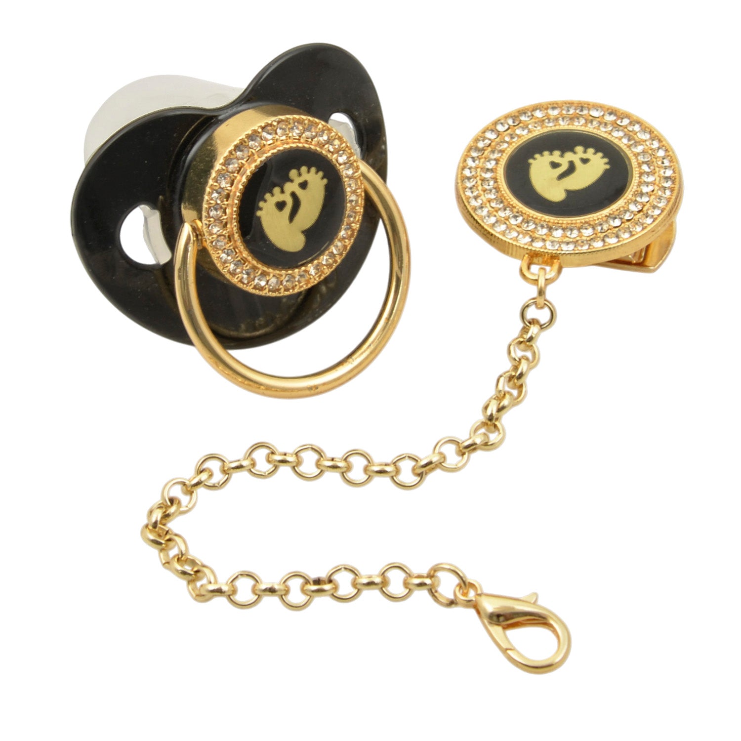 Χειροποίητη πιπίλα πολυτελείας με ασορτί αλυσίδα κλιπ. Μοναδικές πιπίλες με στρας για τις πιο ξεχωριστές εμφανίσεις του μωρού σας!
