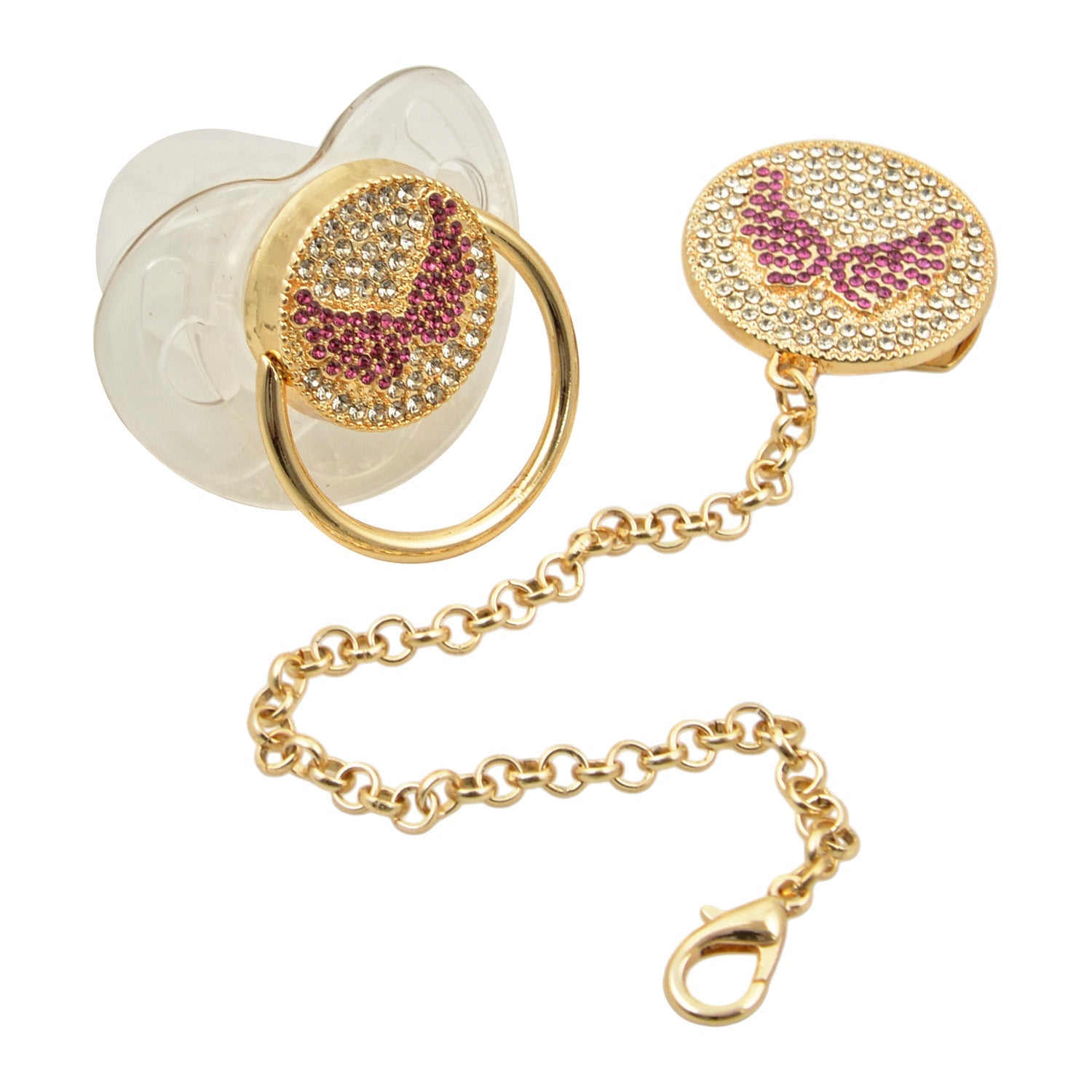 Χειροποίητη πιπίλα πολυτελείας με ασορτί αλυσίδα κλιπ. Μοναδικές πιπίλες με στρας για τις πιο ξεχωριστές εμφανίσεις του μωρού σας!