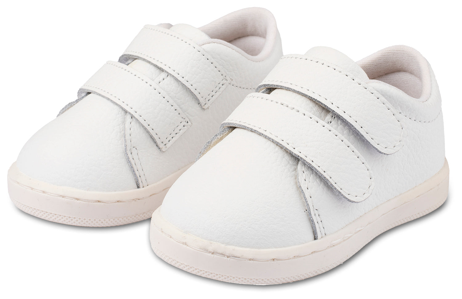 Δερμάτινο Μονόχρωμο Sneakers Διπλή Μπαρέτα Χρατς σε Λευκό Χρώμα