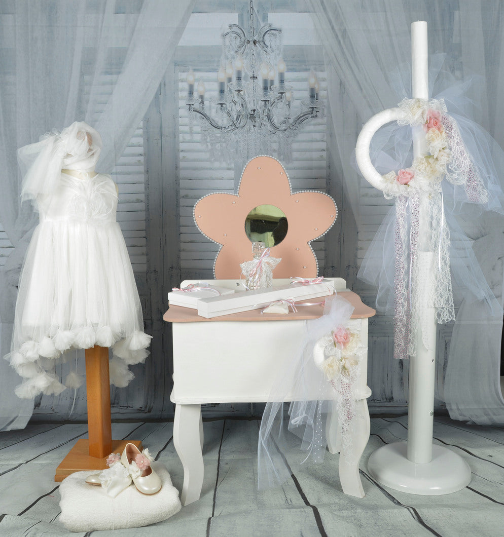 Ένα ολοκληρωμένο πακέτο βάπτισης που σας παρέχει όλα όσα χρειάζεστε για την ξεχωριστή ημέρα της μικρής σας, με ονειρεμένο σχεδιασμό και κομψότητα για να δημιουργήσει μοναδικές αναμνήσεις για τη μικρή σας.