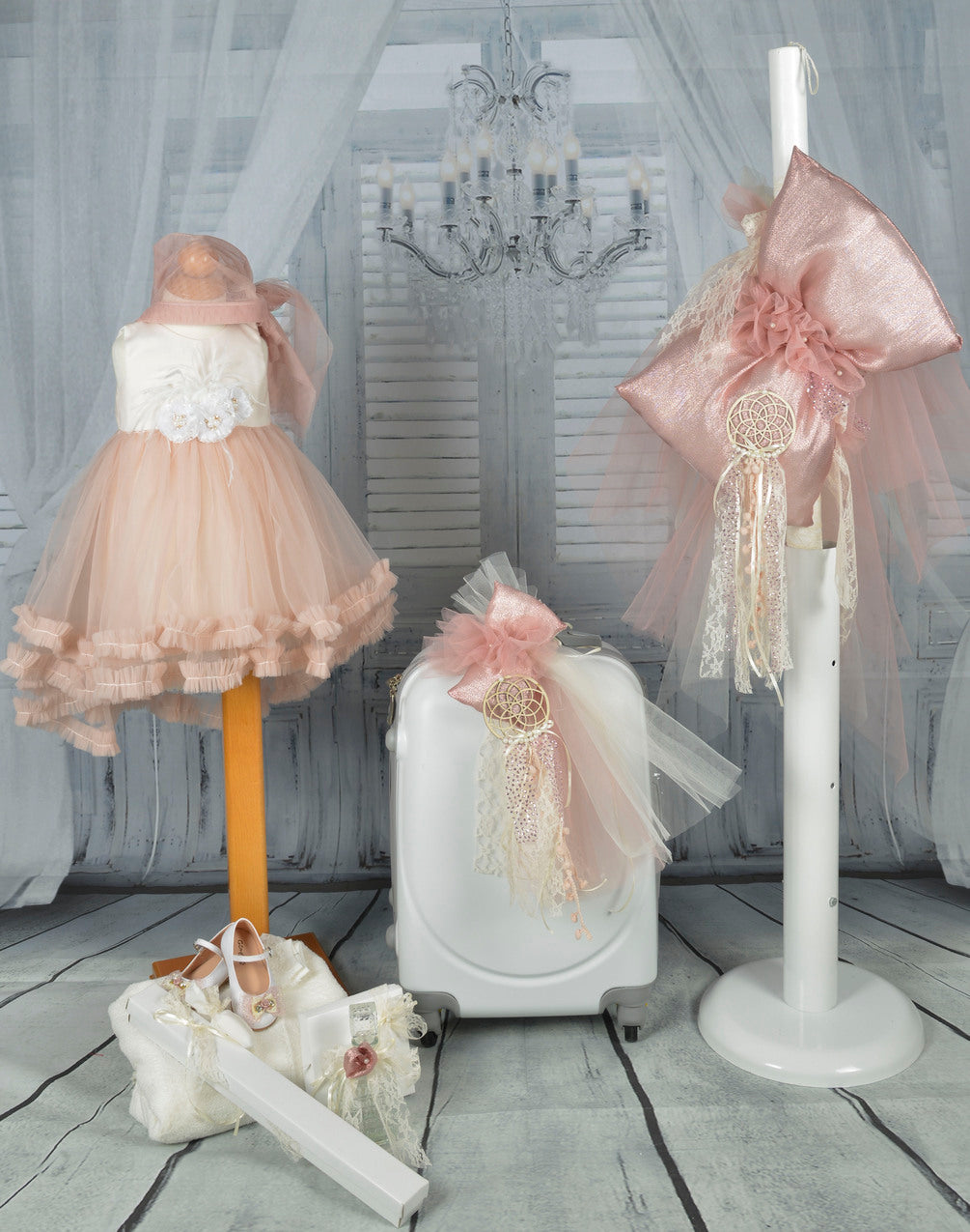 Ένα ολοκληρωμένο πακέτο βάπτισης που σας παρέχει όλα όσα χρειάζεστε για την ξεχωριστή ημέρα της μικρής σας, με ονειρεμένο σχεδιασμό και κομψότητα για να δημιουργήσει μοναδικές αναμνήσεις για τη μικρή σας.