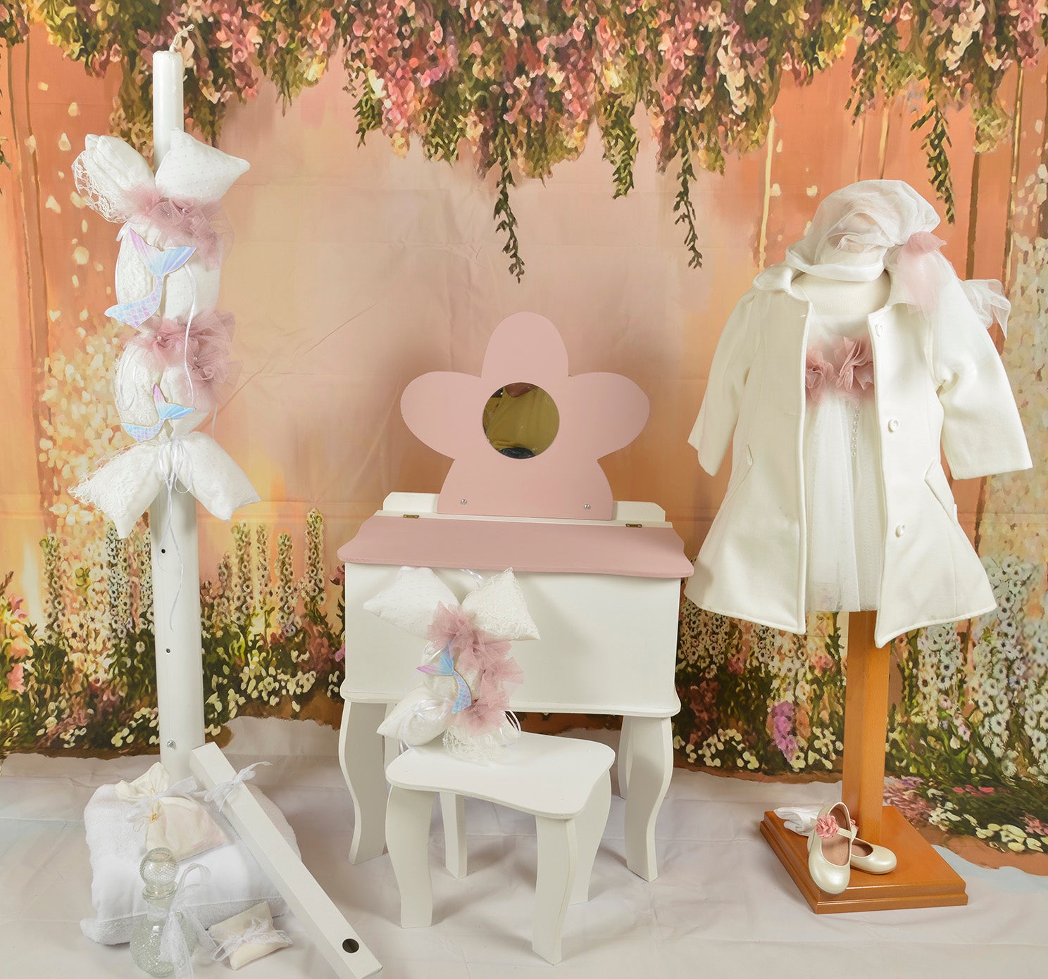 Ένα ολοκληρωμένο πακέτο βάπτισης που σας παρέχει όλα όσα χρειάζεστε για την ξεχωριστή ημέρα της μικρής σας, με ονειρεμένο σχεδιασμό και κομψότητα για να δημιουργήσει μοναδικές αναμνήσεις για τη μικρή σας.