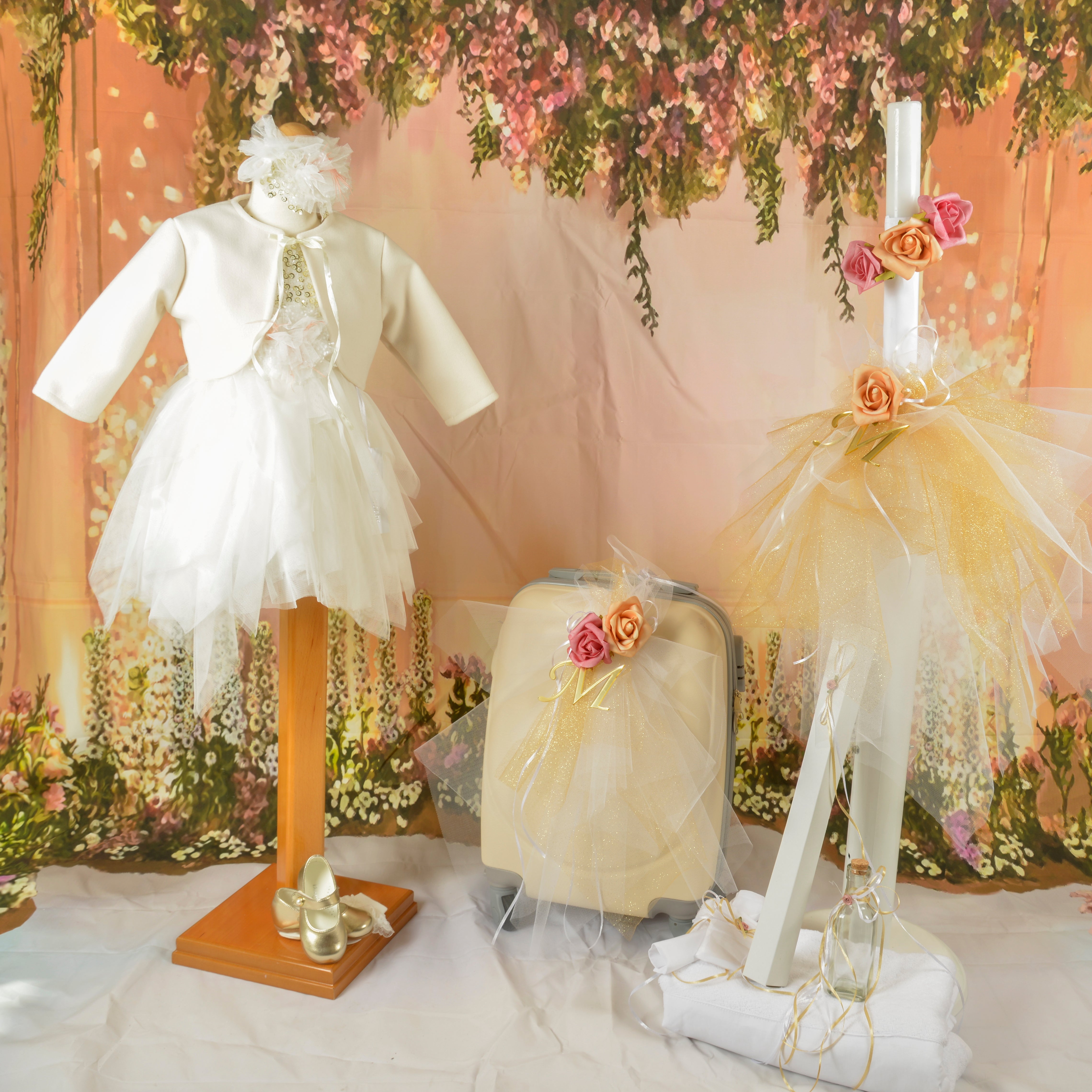 Ένα ολοκληρωμένο πακέτο βάπτισης που σας παρέχει όλα όσα χρειάζεστε για την ξεχωριστή ημέρα της μικρής σας, με ονειρεμένο σχεδιασμό και κομψότητα για να δημιουργήσει μοναδικές αναμνήσεις για τη μικρή σας.