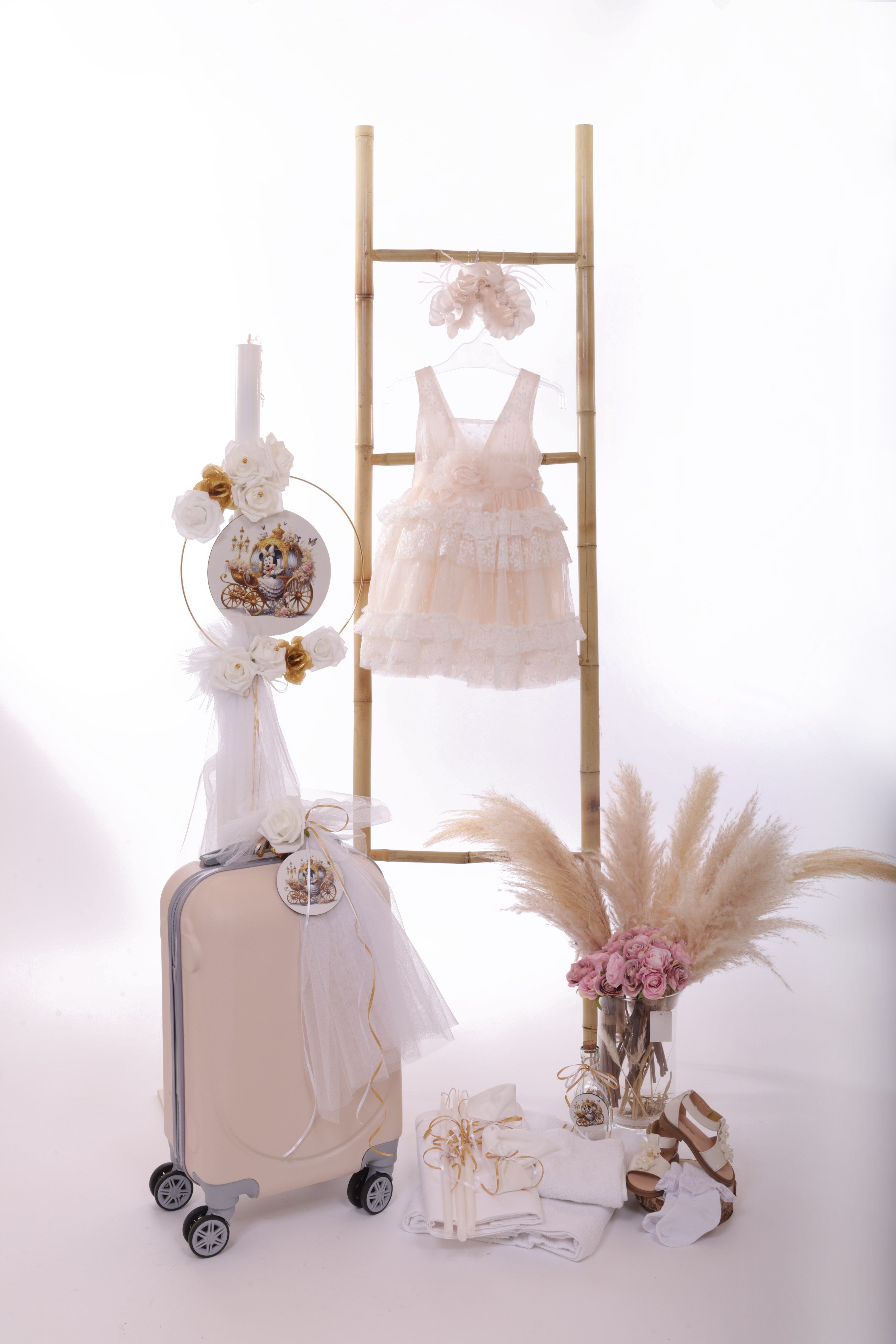 Ένα ονειρεμένο, ολοκληρωμένο πακέτο βάπτισης για τη μικρή σας νεράιδα, σε παστέλ αποχρώσεις σομόν και ivory, με διακριτικές λεπτομέρειες σε θέμα Mini.