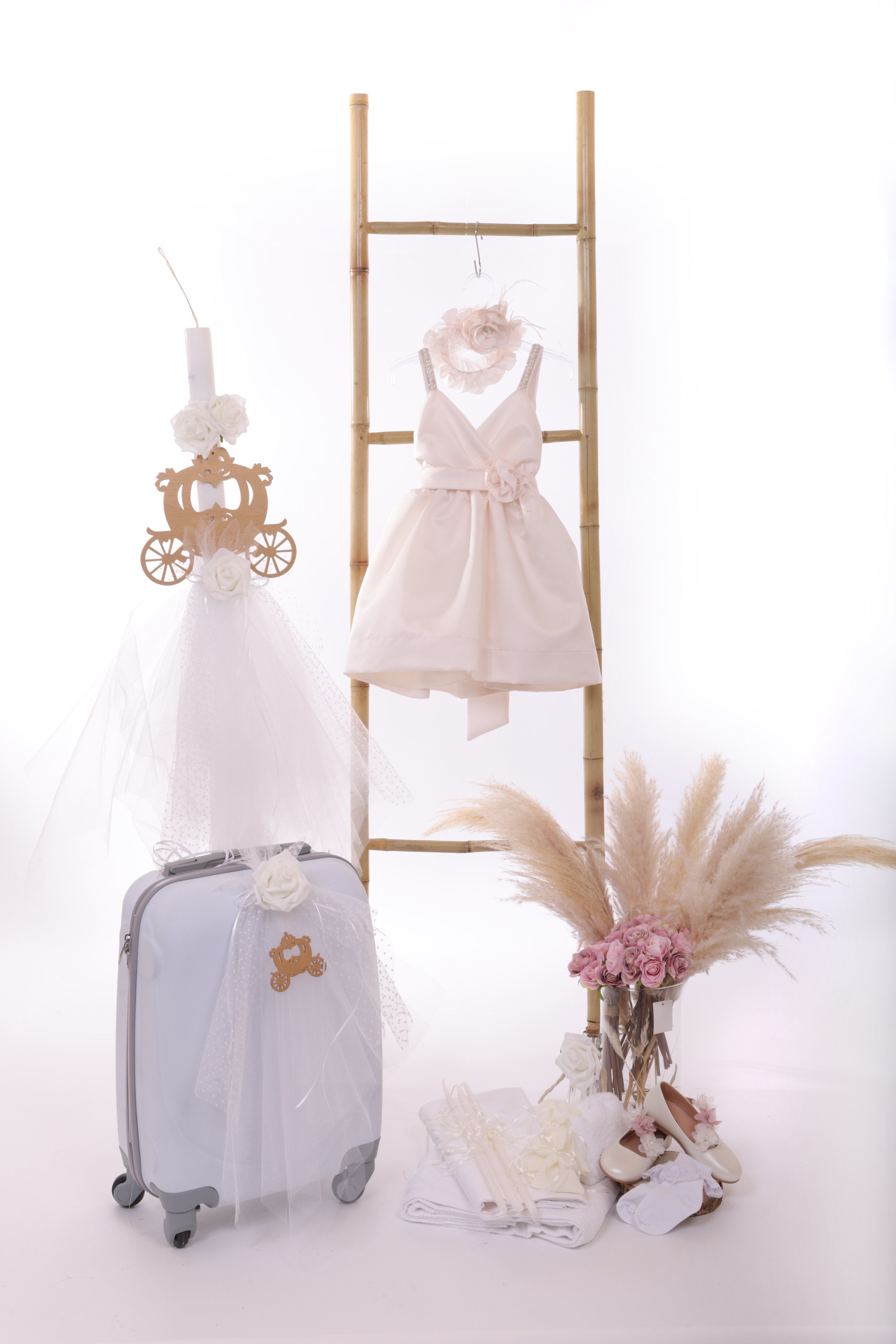 Ένα αριστοκρατικό, ολοκληρωμένο πακέτο βάπτισης για τη μικρή σας, σε σομόν και λευκές αποχρώσεις, με θέμα σταχτοπούτα.