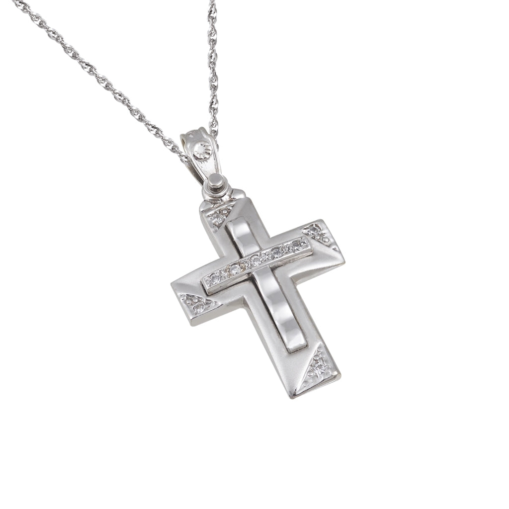Βαπτιστικός Σταυρός απο λευκόχρυσο Κ14 για κορίτσι.