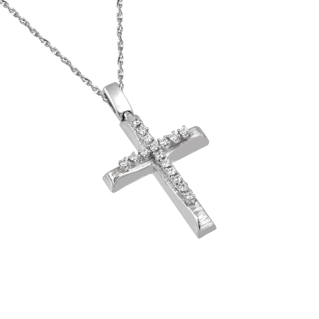 Βαπτιστικός Σταυρός απο λευκόχρυσο Κ14 για κορίτσι.