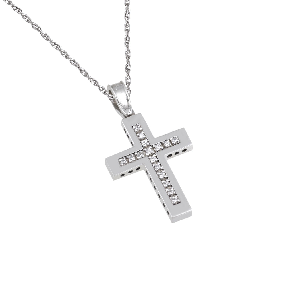 Βαπτιστικός Σταυρός απο λευκόχρυσο Κ14 για κορίτσι.